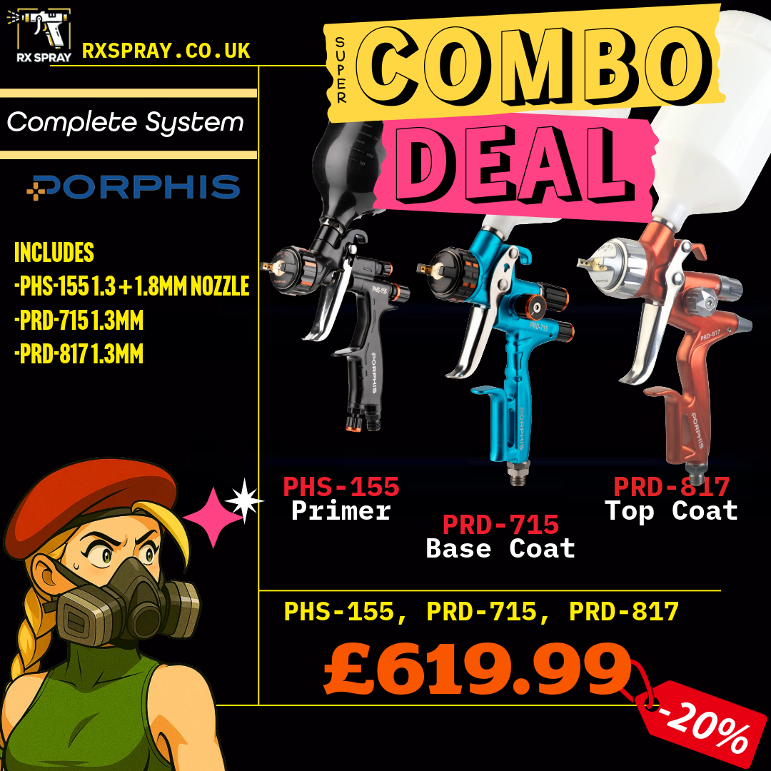 Porphis Professional Full System Spray Gun Bundle - PHS-155, PRD-715, PRD-817
